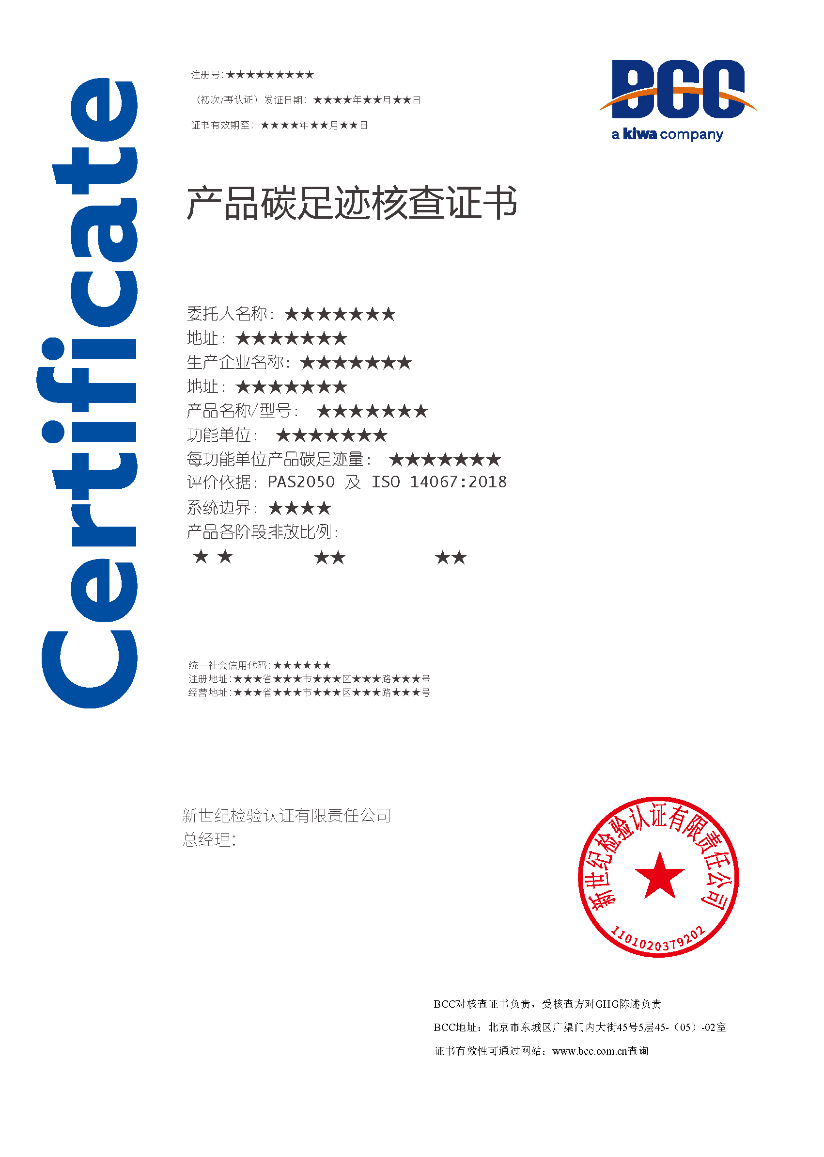 - 2022-07-18 BCC為開璞環(huán)保頒發(fā)ISO 14067產(chǎn)品碳足跡核查證書