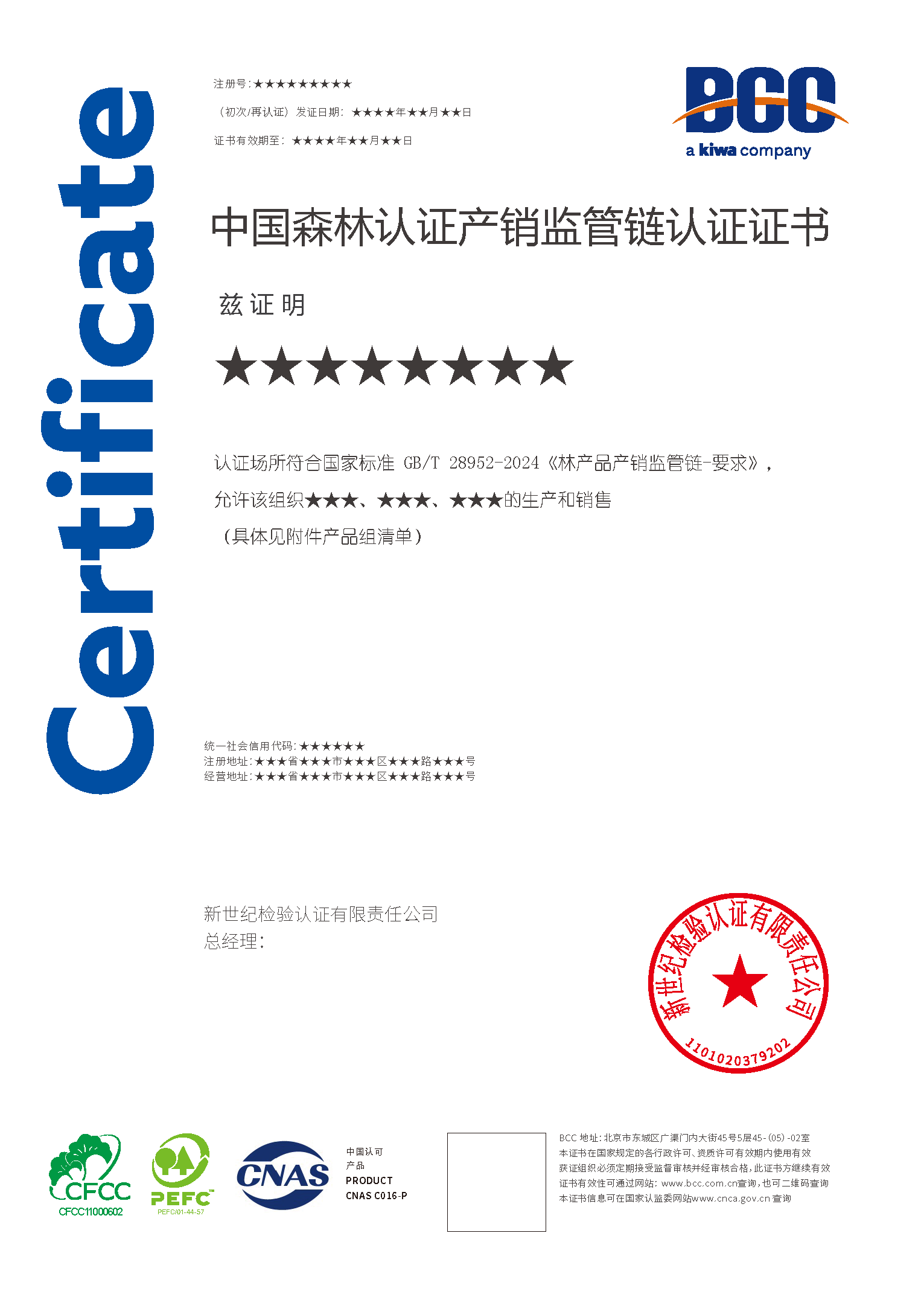 Kiwa BCC已經(jīng)獲得英國土壤協(xié)會SA授權(quán),可在中國開展FSC®產(chǎn)銷監(jiān)管鏈認證(FSC® N001893)和PEFC產(chǎn)銷監(jiān)管鏈認證。同時,可為組織提供CFCC產(chǎn)銷監(jiān)管鏈認證服務(wù)。