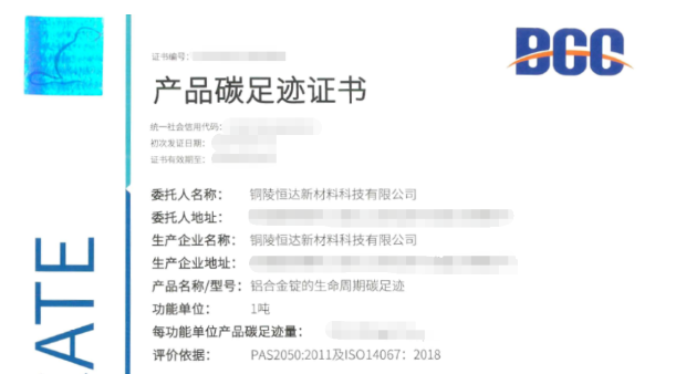健全綠色發(fā)展,Kiwa BCC為銅陵恒達(dá)頒發(fā)產(chǎn)品碳足跡核查證書(shū)