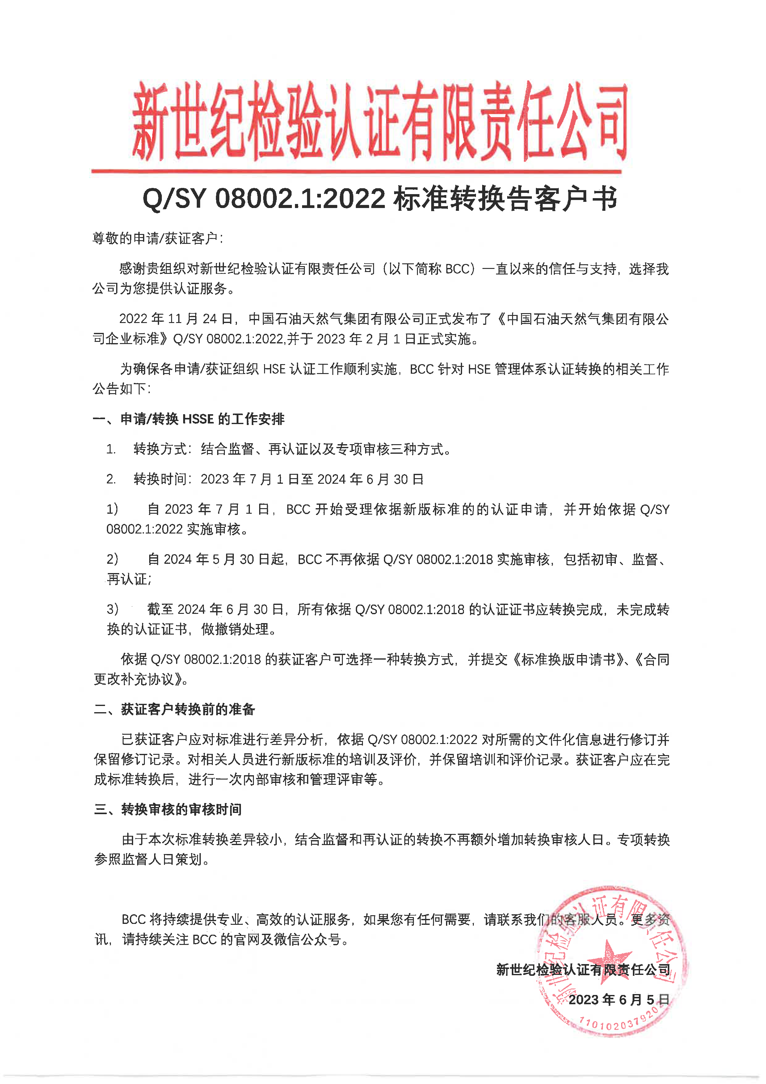 Q/SY 08002.1:2022標(biāo)準(zhǔn)轉(zhuǎn)換告客戶書